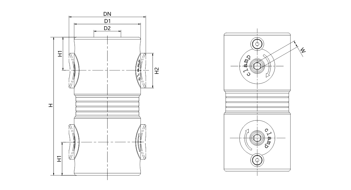 | Dimensionszahl | Dn | D1 | ØD2 | H (± 0,01) | H1 | H2 | W |